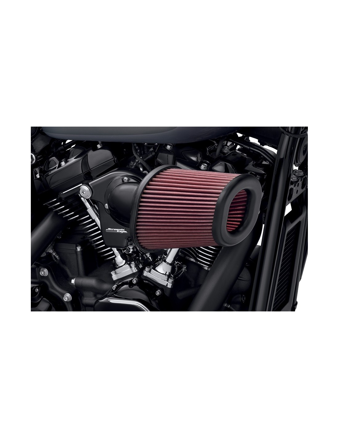 We've taken the iconic Screamin' Eagle® Heavy Breather Air Cleaner to the next level - an extreme performance level. Designed for maximum performance, this extra-large Screamin' Eagle® Heavy Breather Extreme Air Filter flows 42% more air than a traditional Heavy Breather filter. Air moves smoothly through the filter due to an interior bell-shape feature and then travels through a unique round to oval transitioned tube to improve leg clearance while providing unobstructed air to the throttle body. At speeds over 60 mph, the filter captures air from the front, forcing the air through a smaller area to create a RAM air effect, while the long intake tube enhances torque beyond other Ventilator and Round High-Flow Filters for enhanced acceleration. Designed to feed a large displacement engine enough clean air that can support output of over 150hp.
