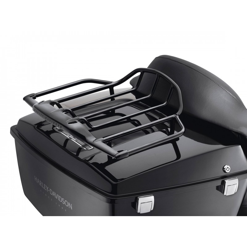 Give your Harley-Davidson® distinctive, functional style with the Low-Profile Air Wing Tour-Pak® Luggage Rack. Designed to fit Razor-Pak, chopped, or King Tour-Pak lids, this rack combines aesthetics and durability. Its gloss black finish highlights aerodynamic lines and enhances the embossed Harley-Davidson® script, adding character and distinction. Constructed with a cast wing and hand-polished steel tubing, it ensures long-lasting beauty and scratch protection for both the trunk and passenger backrest. Includes all necessary mounting hardware and is compatible with optional lighting kits for added visibility.(sold separately): P/N 68271-08A or 68250-08A ('97-'13 models) or 68000112 or 68000113 ('14 and later models)