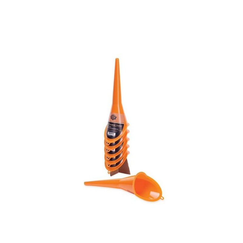 Fill your transmission and crankcase without the mess. This funnel is shaped to fit into tight spaces, and is designed to reach even the toughest access points. The anti-burp design ensures smooth oil flow, and the smooth orange plastic surface is easy to clean after use.