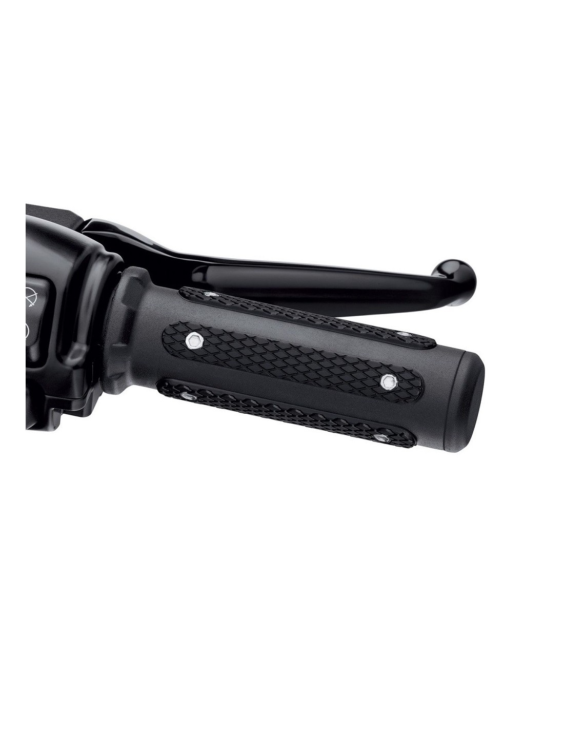 The intense black rubber and matte black finish gives you a powerful new way to highlight your high-performance machine. Hand Grips: Featuring raised black rubber inserts with a black surround, these [insert] diameter grips deliver superior control and tough industrial styling. Easy-to-install glueless design allows you to remove grips for service without damage. WHAT IS THE GRIP DIAMETER?