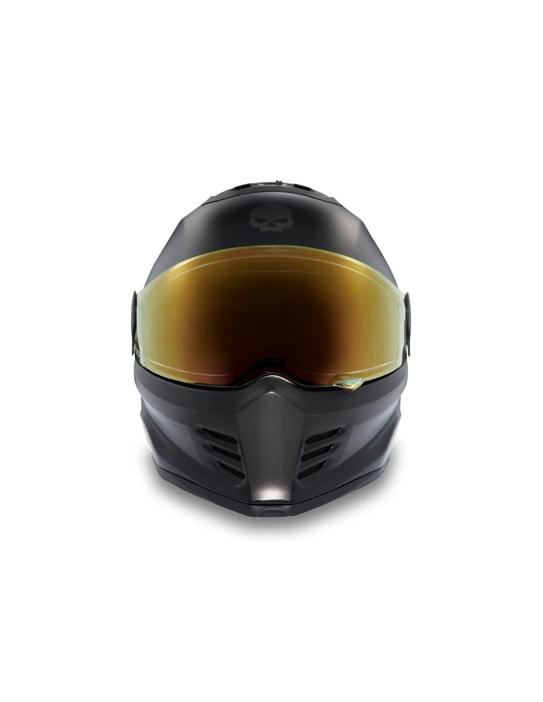 H-D Division X15 Skull Graphic Full Face Helmet: A full-coverage favorite that honors the legacy of Willie G. Davidson. This low-profile full-face helmet is designed with an aerodynamic shell for a quieter, more stable ride. Featuring fiberglass construction, adjustable ventilation, a UV-protected anti-fog visor, and the iconic Willie G. Skull graphic. Dual DOT and ECE approved.
