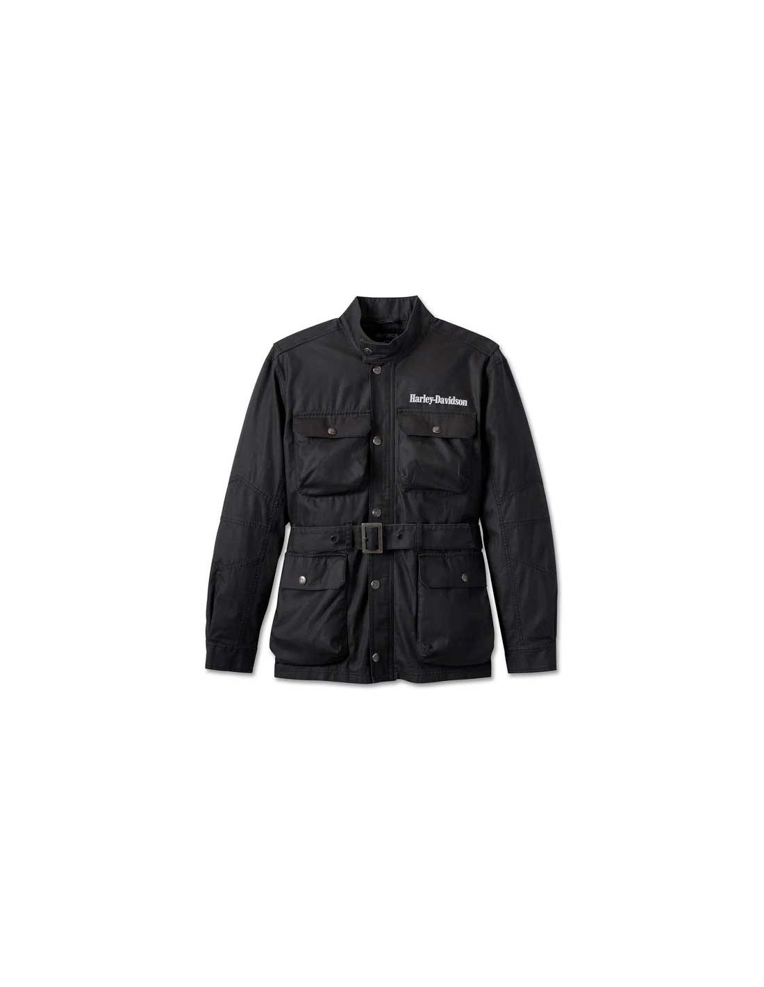 Keep your look legendary in our Limited Issue #1 Riding Jacket. Made from heavyweight cotton plain weave so it’s strong, long-lasting a nd resists pilling. Features an action back, an adjustable belted waistband, and ample pocket space including generously sized bellow pockets. Finished with our seasonal, race-inspired graphics in a reflective print for added visibility. Know the history—the #1 Logo showcased on back originally debuted in 1969 to commemorate Harley-Davidson’s AMA Grand National Championship season title. If you like this jacket, cart it now since it’s only here while supplies lasts.