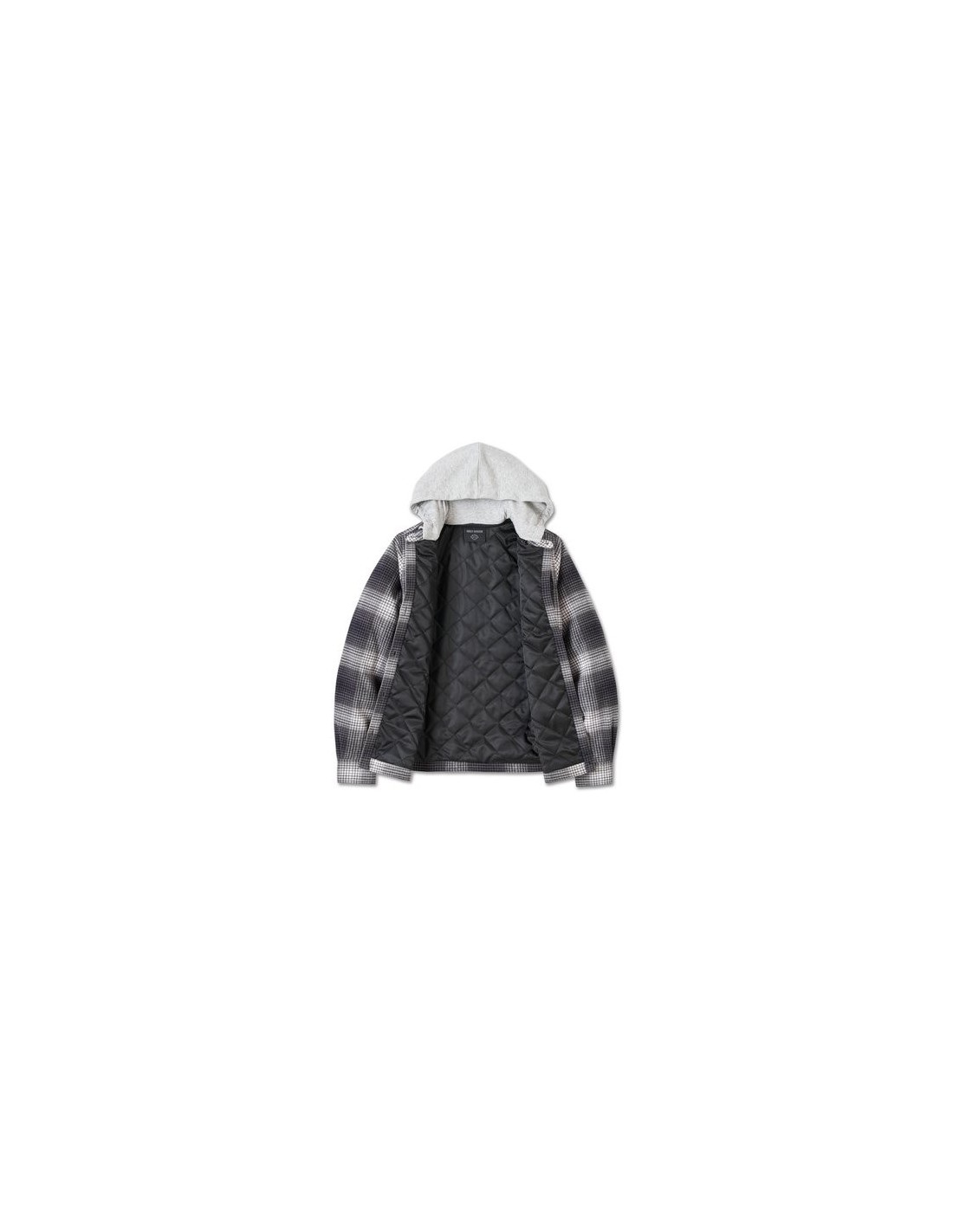 Materials: Materials: 100% cotton heavy twill yarn-dyed plaid, brushed. 100% polyester matte twill lining. Lightweight polyfill. 60% cotton, 40% polyester fleece (hood).