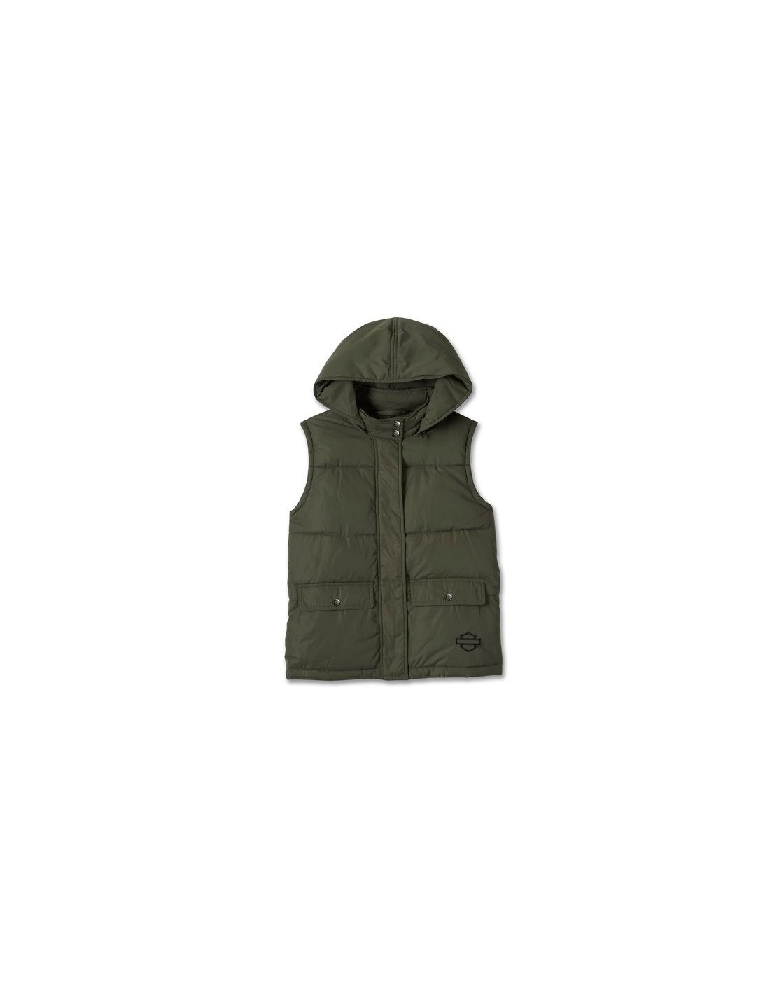For a versatile, modern addition to your fall and winter wardrobe, get the Limited Edition Bar & Shield Quilted Ves t. Made from brushed polyester taffeta that’s lined and poly filled for added warmth. This women’s vest features a removable zip-out hood, a hidden snap + zipper placket for a more streamlined look, and an interior pocket for stashing essentials. Minimally branded for a lowkey style that you can layer with any H-D top in your collection. Order ASAP—quantities of this seasonal staple are limited.