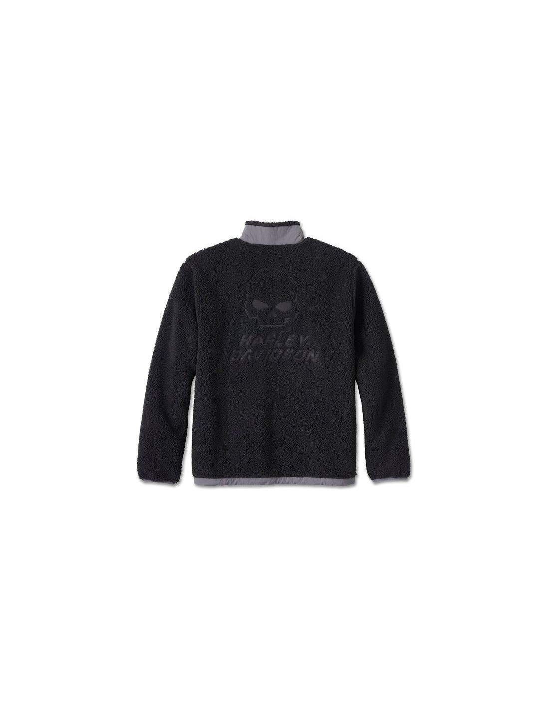 Fuzzy Sherpa comfort gets a modern hit of Harley-Davidson style on our Limited Edition Willie G™ Skull Prancer Fleece. Crafted from heavyweight polyester Sherpa with a cotton/polyester fleece lining, it’s an ideal outer layer. This men’s zip front fleece has added stay-warm features like elastic cuffs, a toggle-cord waist, and zippered handwarmer pockets. It’s finished with impressive direct embroidery and a PVC patch for an outdoor-loving look that’s uniquely Harley-Davidson. Fun fact—the Skull featured on back was originally created by Willie G. Davidson for Daytona Bike Week in 2000, and has been a rider favorite ever since. Order now—this style is only here while supplies last.