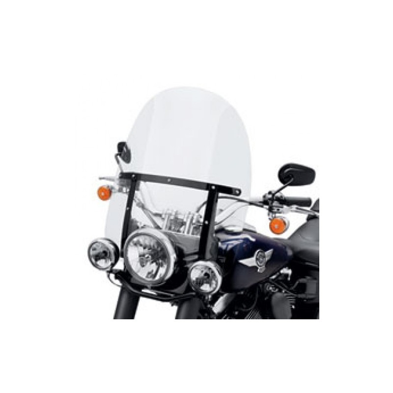 Transparente de 21". Para los modelos FLSTC ´86-´99, FLS, FLSTF, FLSTFB ´90 y posteriores, FLST ´06 y FLSTN ´93-´96 sin faros auxiliares o con el kit de alumbrado auxiliar custom N/P 68000051. Altura total 26´3", anchura 23´1".
