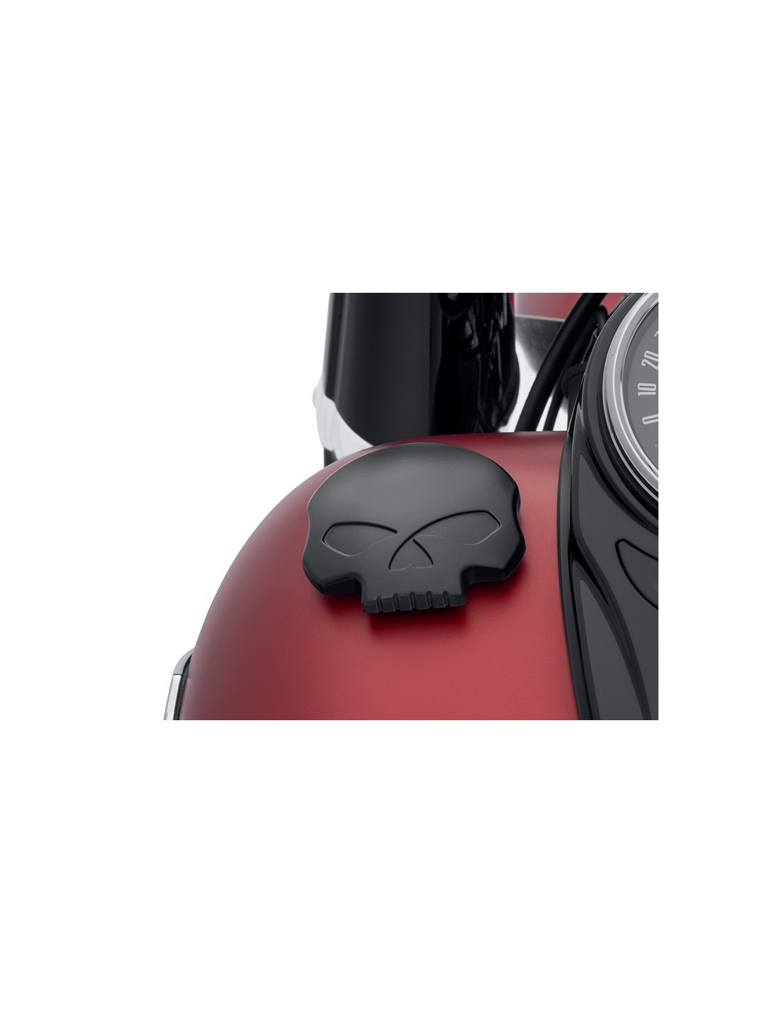 Add character to your motorcycle. Designed to complement Harley-Davidson® Skull accessories, the menacing raised skull with black eyes features a rich finish and a shape designed to be easy to handle, even with gloves.