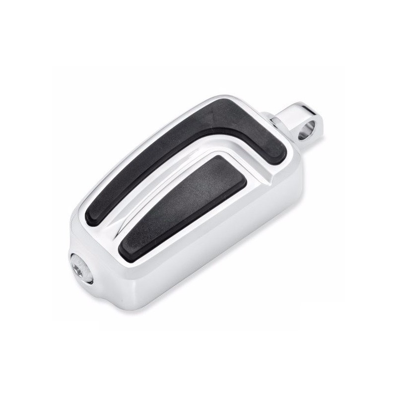 These footpegs are adjustable for position and feature a rectangular shape and a raised rubber surface for foot support and traction whether used as a rider, passenger, or highway peg.