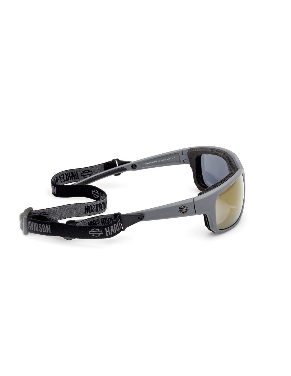 Harley Davidson "Classic Eagle 2.0" sunglasses featuring a grey frame and smoke mirror lenses with advanced hydrophobic coating for maximum road visibility.