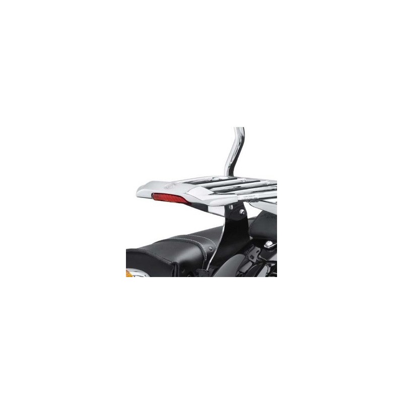 El diseño aerodinámico de perfil bajo define el aspecto de esta bandeja portaequipajes. Disponible en un acabado cromado tipo espejo o negro brillante profundo, esta trasera fundida de tipo “Air Foil” llama la atención. Además, el adorno Bar & Shield le aporta un toque auténtico. Esta elegante bandeja de tubos redondos, incorpora unas tiras de goma que facilitan el agarre y unos puntos de montaje específicos para cuerdas elásticas que te ayudarán a sujetar cómodamente el equipaje. El kit incluye toda la tornillería de fijación necesaria. Para una mayor visibilidad, la bandeja ha sido diseñada para incorporar el cableado interno del kit de luces LED para bandeja Air Foil, N/P 68000076 (rojo) o 68000077 (ahumado), que le dan a la moto un aspecto aún más despejado.