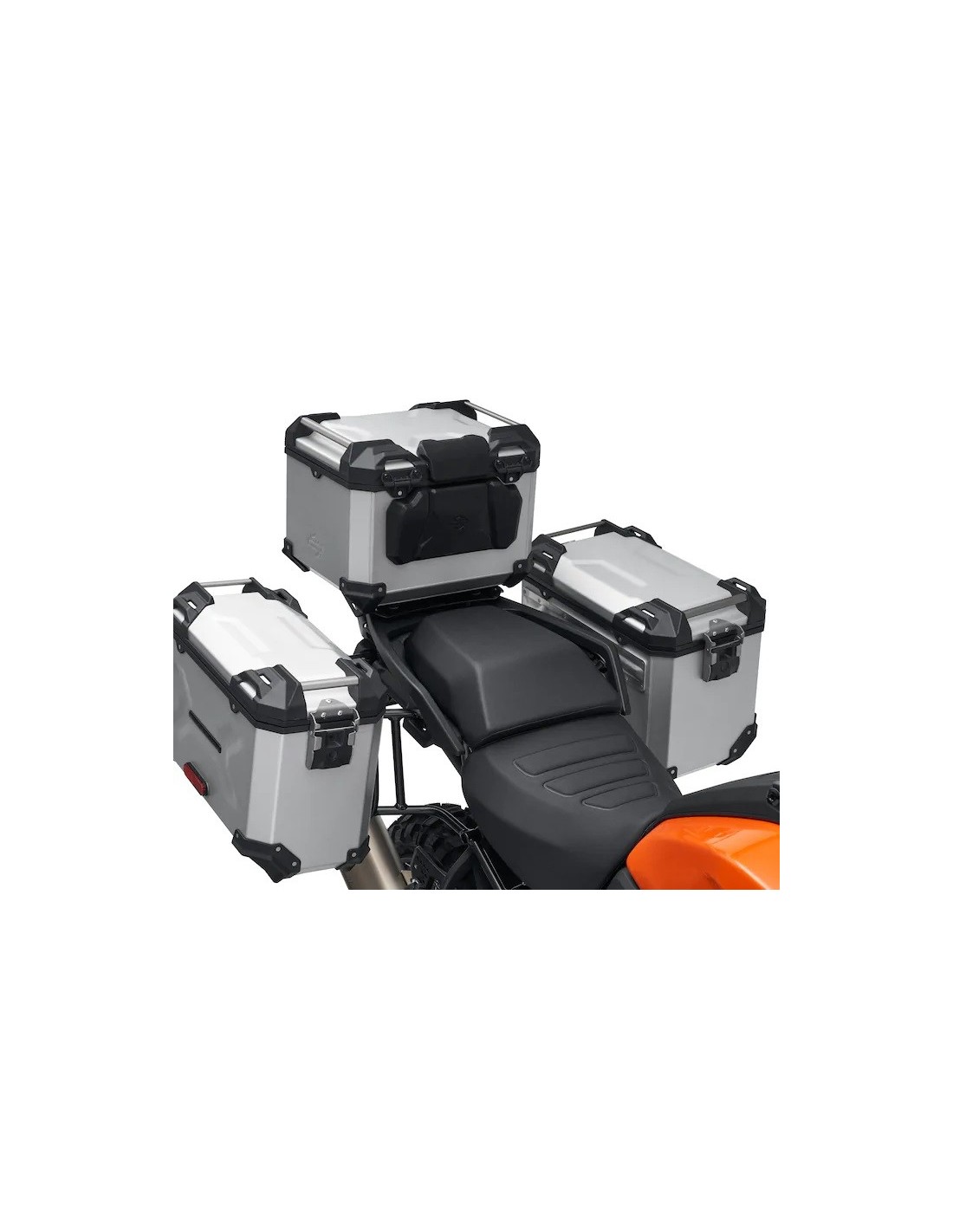 Esta maleta superior de aluminio resistente fue creada en colaboración con SW-MOTECH para viajes dentro y fuera de la carretera. Cada pieza ha sido diseñada y probada con la motocicleta para garantizar un ajuste, durabilidad y confiabilidad de calidad de fábrica, sin comprometer el manejo o el ángulo de inclinación de la motocicleta. Tanto las cajas como los soportes han pasado las pruebas de vuelco estáticas de Harley-Davidson. El acabado anodizado transparente es fácil de limpiar y evita la oxidación. Con una junta en la tapa, cada pieza es impermeable y pasa una rigurosa prueba de intrusión de agua Harley-Davidson ™. Cada uno de los estuches tiene asas integradas y ojales elásticos, y una sola llave bloquea cada estuche cerrado y bloquea el estuche en su soporte.