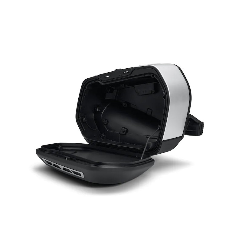 En la caja: Maletas laterales derecha e izquierda, kit de cerradura para cada maleta, reflectores, soportes, instrucciones de instalación