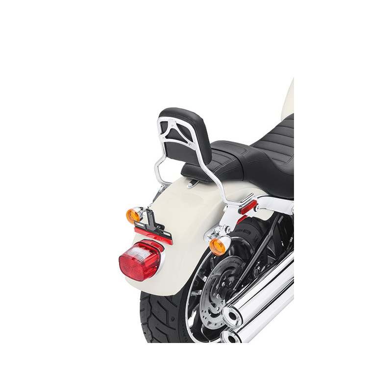 Un arco del respaldo del asiento trasero y una almohadilla del respaldo del asiento trasero son el punto de partida para crear una máquina Touring completa. El respaldo proporciona soporte y comodidad en los viajes largos y le confiere al acompañante una sensación de control y confianza. Los apoyos del respaldo de una pieza HoldFast tienen un sistema de fijación exclusivo que permite instalar o desmontar el respaldo en cuestión de segundos, aportando versatilidad a tu conducción.
