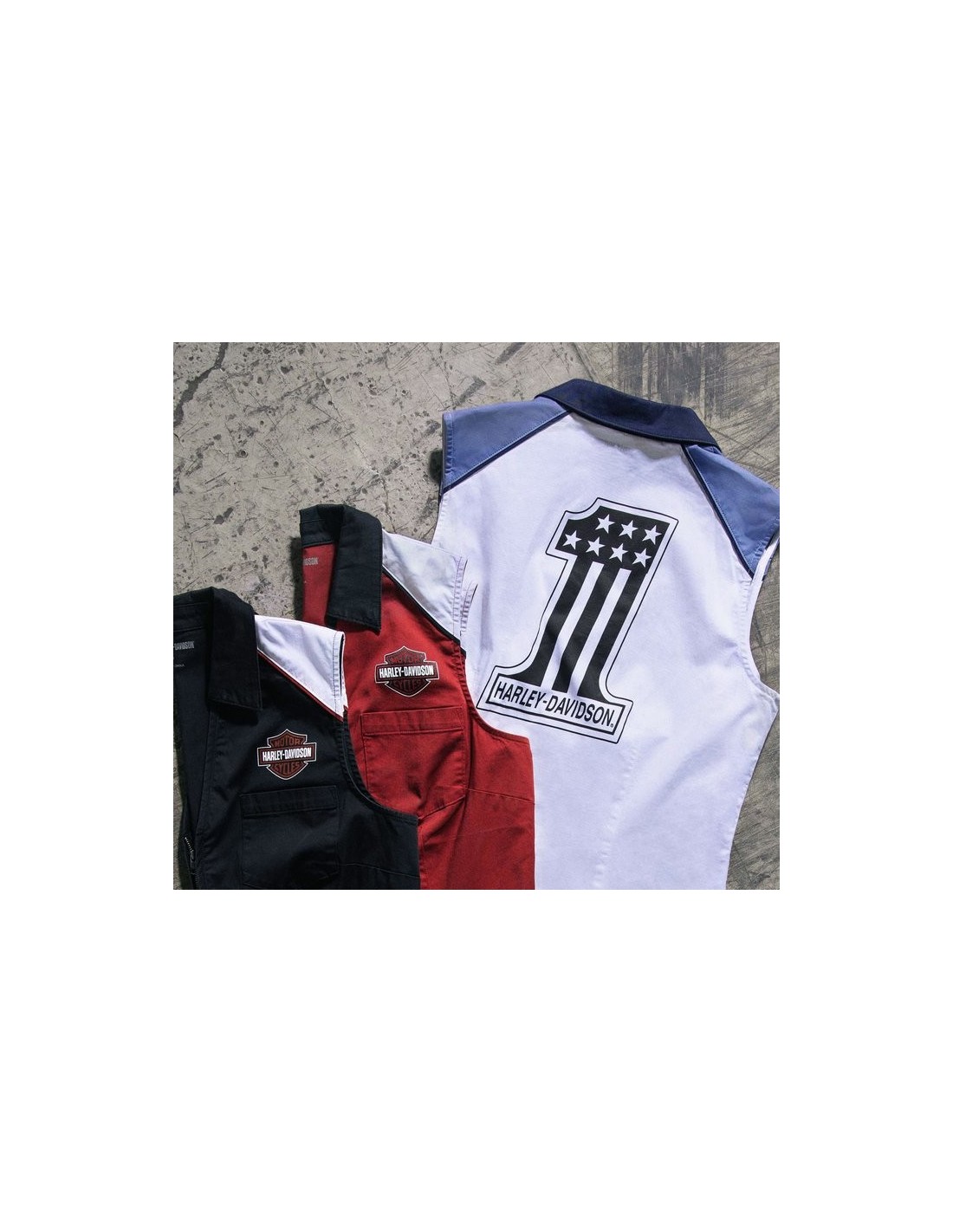 Camisa Harley Davidson Liberty sin mangas con cremallera frontal para mujer - Estilo Colorblock - Black Beauty