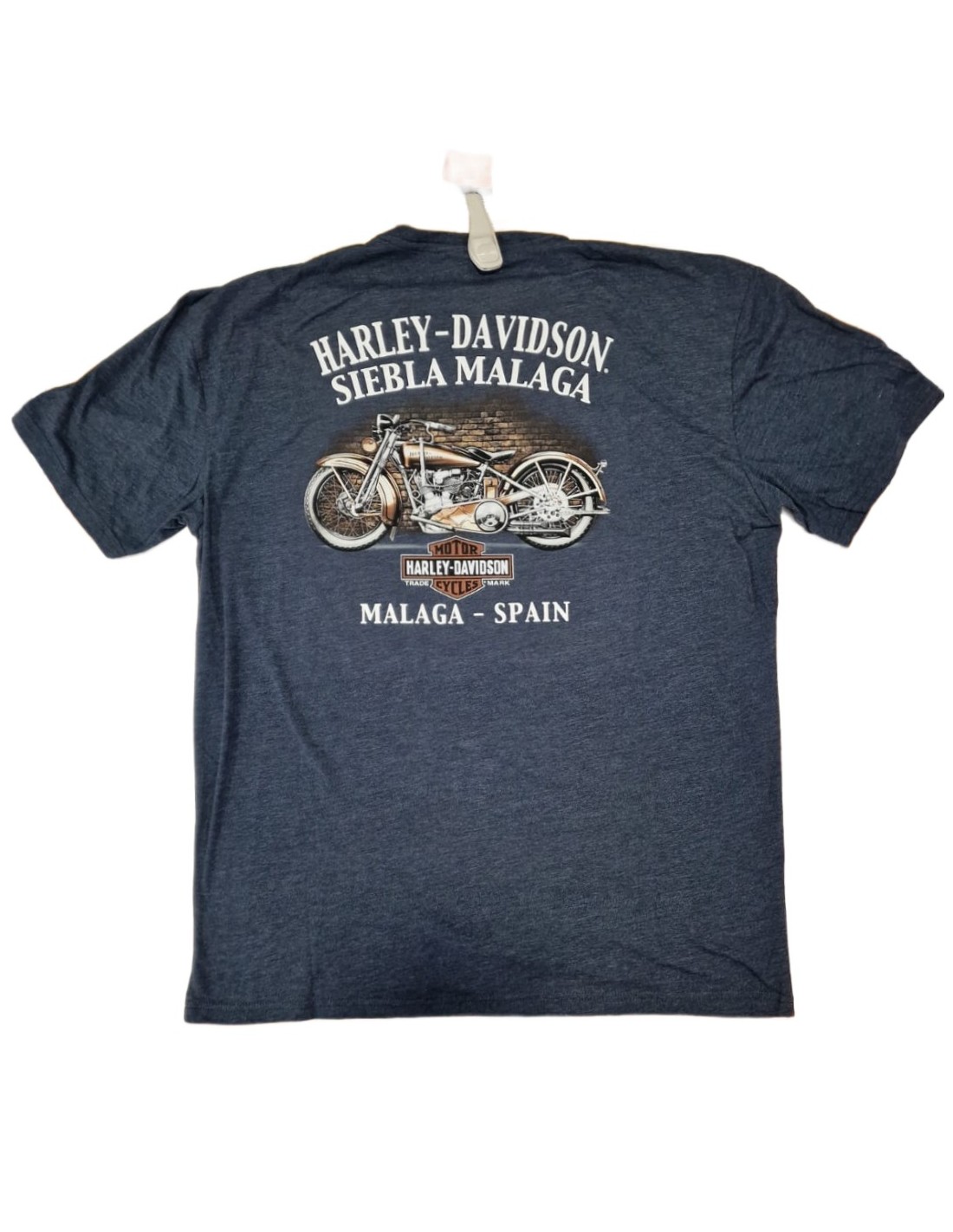 Toque Único: El impactante estampado trasero presenta una representación de Harley Davidson Siebla Málaga, rindiendo homenaje a la herencia Harley-Davidson con un distintivo giro.