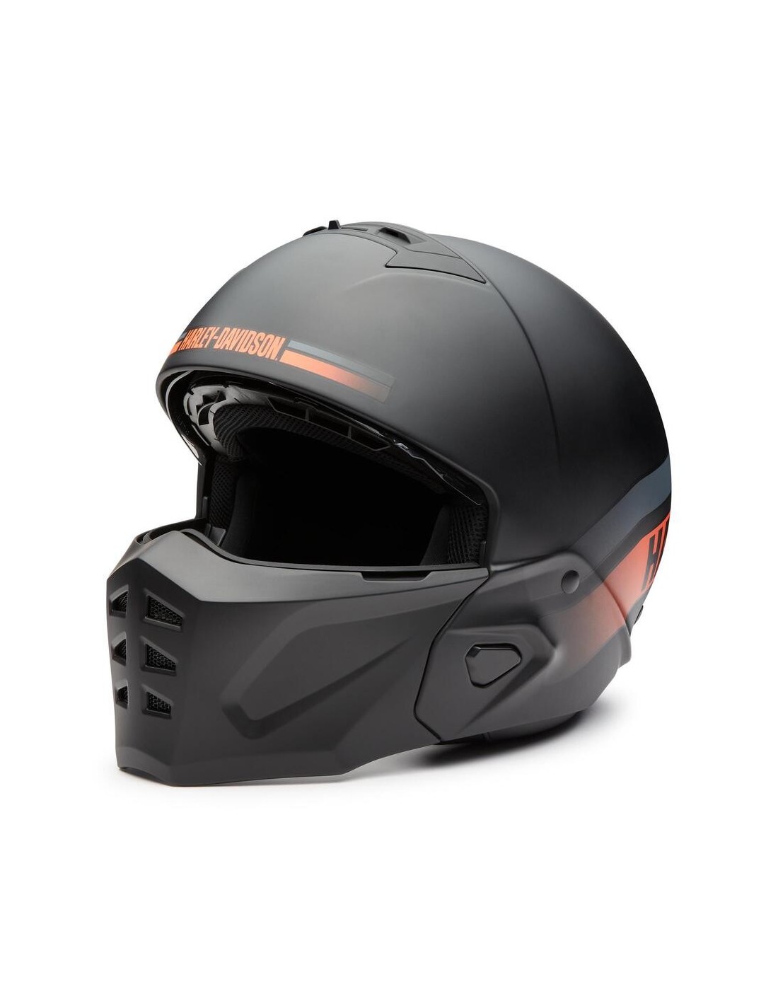 El Casco Modular Harley-Davidson® Ultra X16 2-in-1 ofrece protección y versatilidad con su diseño convertible (estilo 3/4 o con mascarilla). Construido con una carcasa termoplástica ligera, cuenta con ventilación superior, protector facial anti-arañazos/UV y almohadillas Kwikfit® para gafas. Incluye compartimentos para altavoces Bluetooth® y presenta un estilizado acabado Matte Harley Black. Homologación ECE R22.06 y DOT.