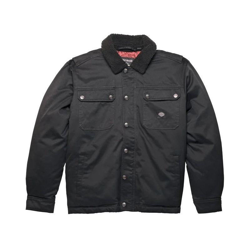 Manténgase cómodo y comprometido con la legendaria marca de motocicletas que ama con nuestra chaqueta Milwaukee Twill. Confeccionado con sarga de algodón resistente lavado con enzimas para brindar suavidad y una apariencia desgastada, con un forro acolchado para mayor calidez. Disponible en una silueta personalizada tradicional y de ajuste delgado con características amigables para andar, como un respaldo de acción y un cuello a presión oculto que no se moverá mientras conduce. Su cuello Sherpa de poliéster agrega un toque de comodidad difusa, mientras que la parte posterior celebra la historia del origen de Harley-Davidson en un bordado llamativo.