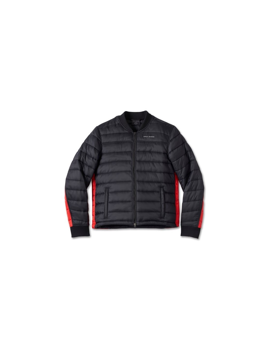 Pilota bajo temperaturas gélidas con nuestra H-D® Flex Layering System Heavy Insulated Mid Layer. Esta es la capa 2 de nuestra línea modular 1-2-3, que te ofrece opciones intercambiables de protección y estilo para ir en moto. Esta chaqueta de moto de capa intermedia tiene un exterior de nailon resistente y un forro relleno para ofrecer un calor ligero en la carretera y fuera de ella. Su estilo bomber acolchado con un toque de color y una imagen de marca mínima queda muy bien por sí solo, además de llevar material reflectante para una mayor visibilidad y una práctica bolsa para guardarla. Añade protección contra impactos combinando esta capa intermedia con nuestra capa de protección H-D Flex Layering System Armored Base Layer (98122-23VM), y remátala con una capa exterior protectora de nuestra más reciente selección de chaquetas de moto.