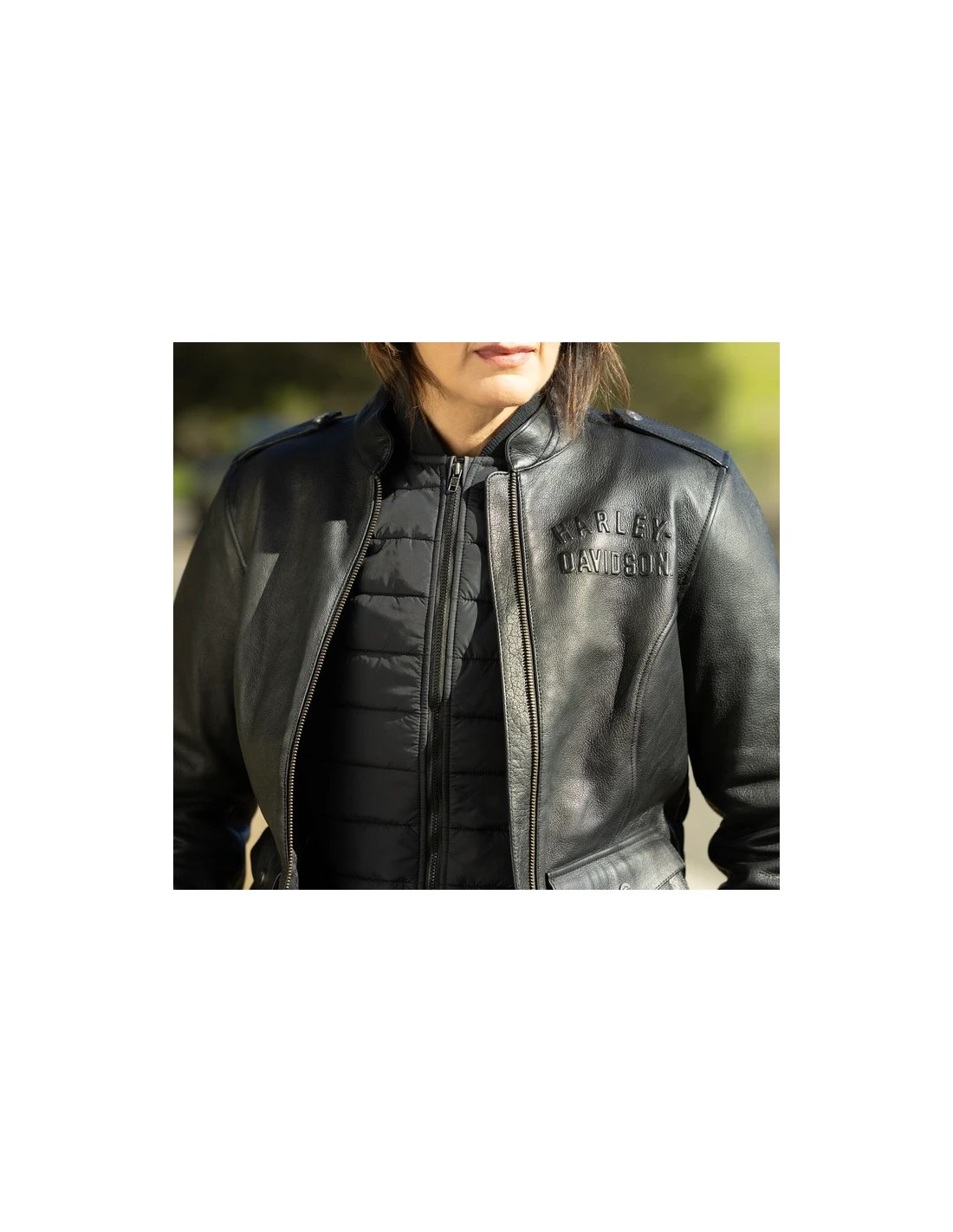 Chaqueta de cuero Harley Davidson Captains con sistema de capas H-D Flex para mujer