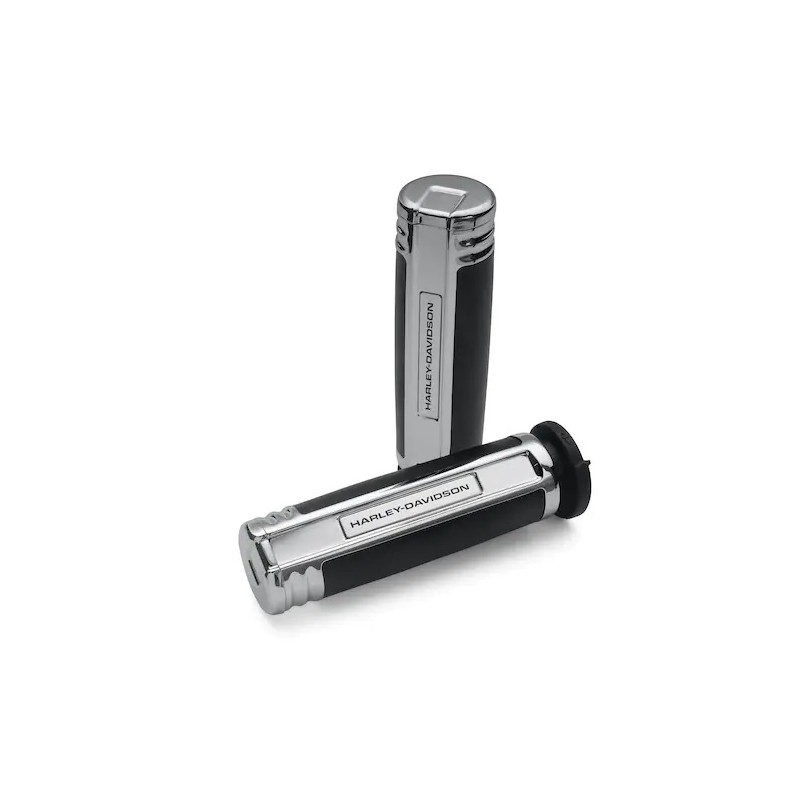 Sube la apuesta. El cromo brillante resalta las profundas ranuras que añaden una llamativa sensación de relieve y detalle a esta completa colección de mandos de mano y de pie.