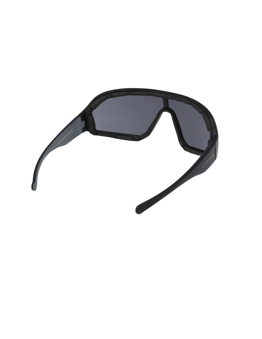 Gafas técnicas para hombre de la serie "Blistering". Montura negro brillo, lentes humo y recubrimiento hidrofóbico para una visión perfecta bajo cualquier clima.