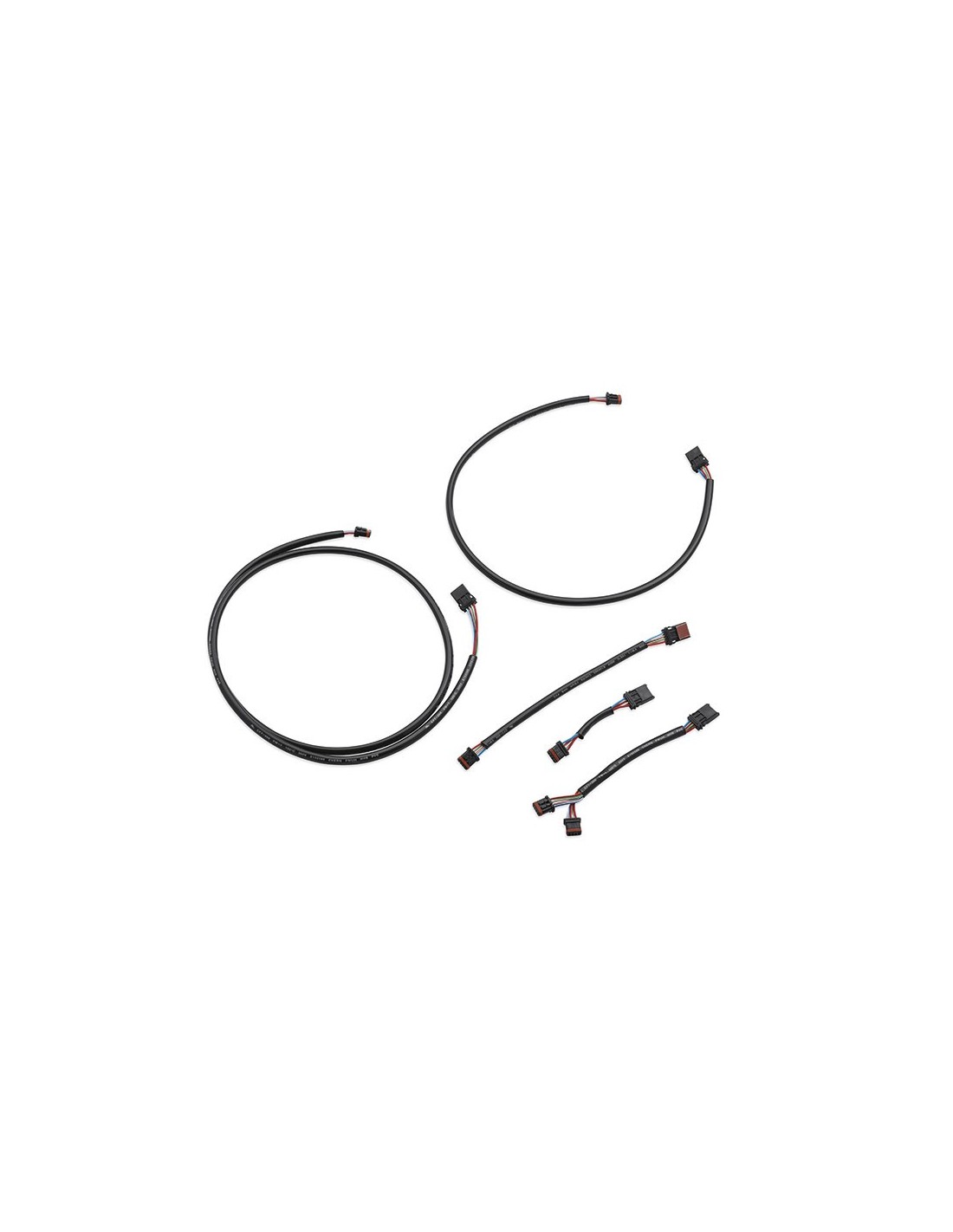 Estos conjuntos de cables están diseñados a medida para facilitar la instalación de las luces Spectra Glo. Planifica la instalación y selecciona el largo de los cables de modo que puedas colocar las luces en cualquier parte de la moto. No es necesario cortar o empalmar.