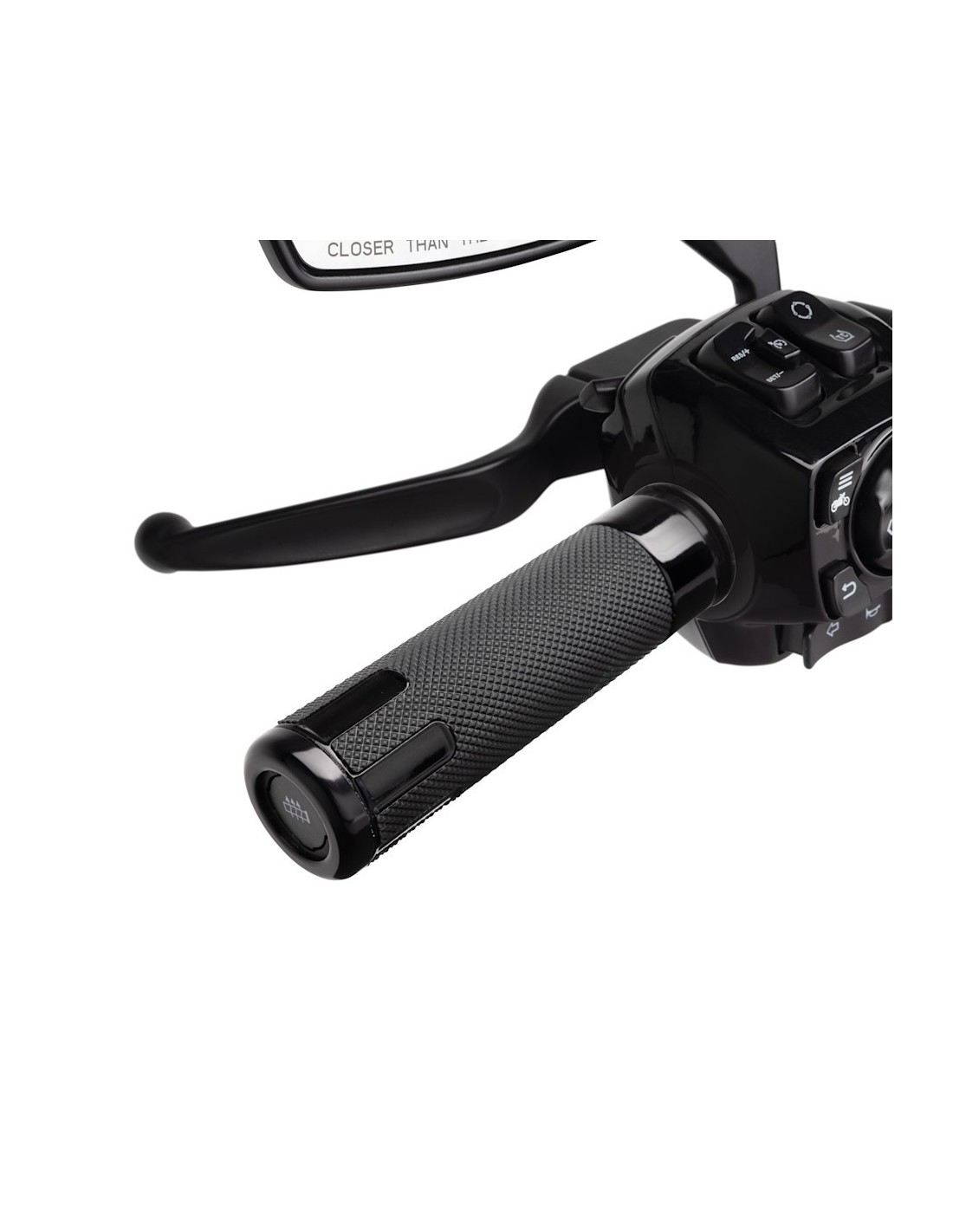 El sistema ofrece tres ajustes (Alto, Medio y Bajo) que se gestionan fácilmente mediante un botón en el puño izquierdo o a través de la pantalla táctil de la moto, con indicadores visuales en la instrumentación. Su estética destaca por un duradero acabado en doble anodizado negro y una textura de goma que proporciona un agarre firme y seguro. Completa el look personalizado de tu Harley con otros accesorios de la línea Switchback. Disponible en Siebla.