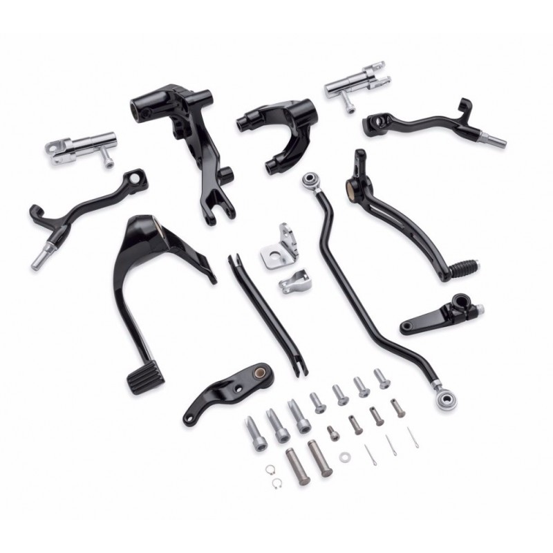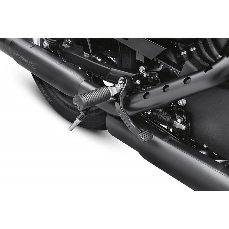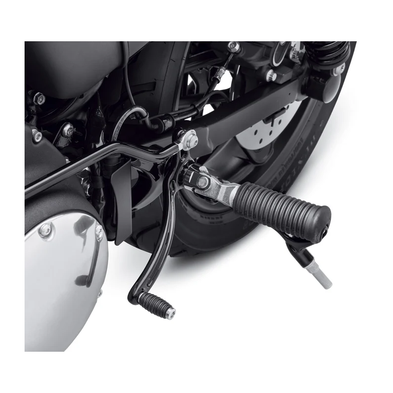 Transforma el perfil urbano de tu Sportster. Al mover los mandos de pie hacia atrás, la posición de conducción pasa de ser una relajada cruiser a una postura solitaria y agresiva para trazar las curvas. Cuando se combina con un manillars Clip-On o Clubman, la postura resultante, con las manos hacia adelante y los pies hacia atrás, envuelve al piloto sobre la moto y le hace sentirse parte de la máquina.