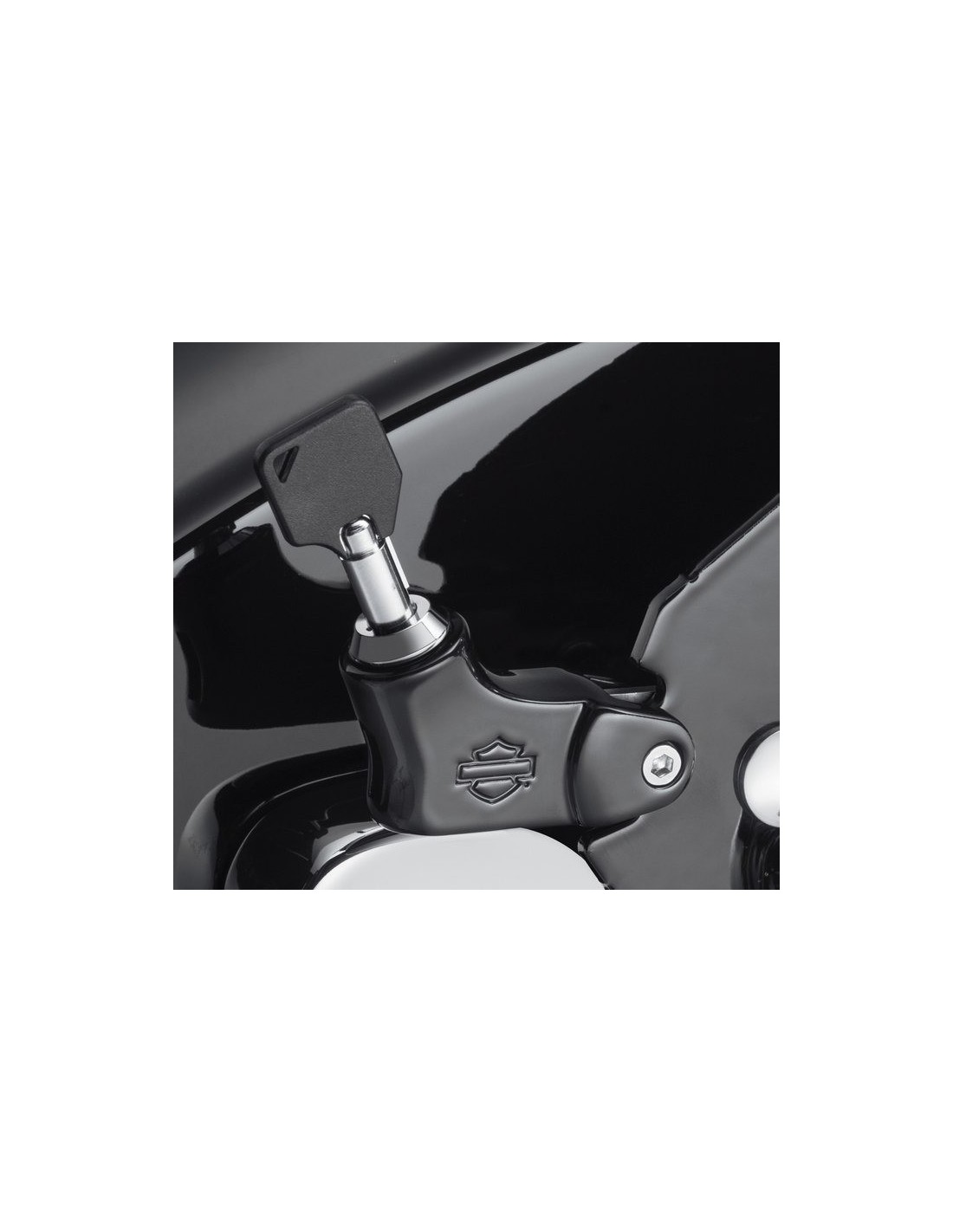 Protege tus objetos de valor. Este sistema de cierre te permite proteger el Sissy Bar HoldFast, la bandeja portaequipajes o la bandeja Tour-Pak contra robos y dejar el vehículo aparcado con seguridad y tranquilidad.