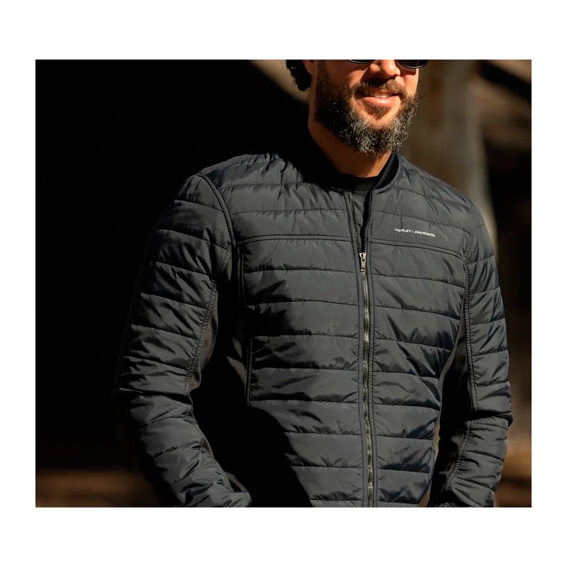 Mantente abrigado sin añadir volumen con nuestra H-D Layering System Lightweight Mid Layer. Es la segunda capa de nuestra línea modular 1-2-3, que te ofrece opciones intercambiables de protección y estilo para el pilotaje. Esta capa intermedia con relleno de poliéster tiene una estructura híbrida duradera con forro polar en las axilas y paneles laterales para mantenerte caliente. Su estilo acolchado queda muy bien como prenda independiente, y además incorpora material reflectante para una mayor visibilidad y una práctica bolsa de bolsillo. Añade protección contra impactos combinándola con nuestra Layering System Armored Base Layer (98122-23VM). Termina con una capa exterior protectora resistente a la abrasión como nuestras H-D Layering System Trucker Riding Jacket (98124-23VM), H-D Layering System Bomber Riding Jacket (98125-23VM), H-D Layering System Café Racer Leather Jacket (98015-23VM), o H-D Layering System Captains Leather Jacket (98022-23VM).