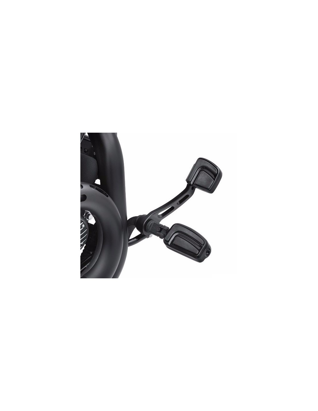 Colección Airflow – Negro brillante Definida por un entorno elegante, la ranura profunda en forma de palo de hockey y las franjas de tracción de caucho, esta colección inspirada en un ala en triángulo es perfecta para tu máquina callejera de alto perfil. Las superficies en negro intenso que proporcionan mayor adherencia están divididas por un canal profundo que desvía la atención del borde de ataque al borde de salida. Disponible en acabado negro brillante o cromado tipo espejo, para que tú elijas. Estriberas Airflow – Negro brillante La posición de las estriberas puede regularse, su forma es rectangular y cuentan con una superficie de goma en relieve que sirven de apoyo y agarre para los pies, tanto si se utilizan como estriberas del piloto, del acompañante o para marcha por autopista.