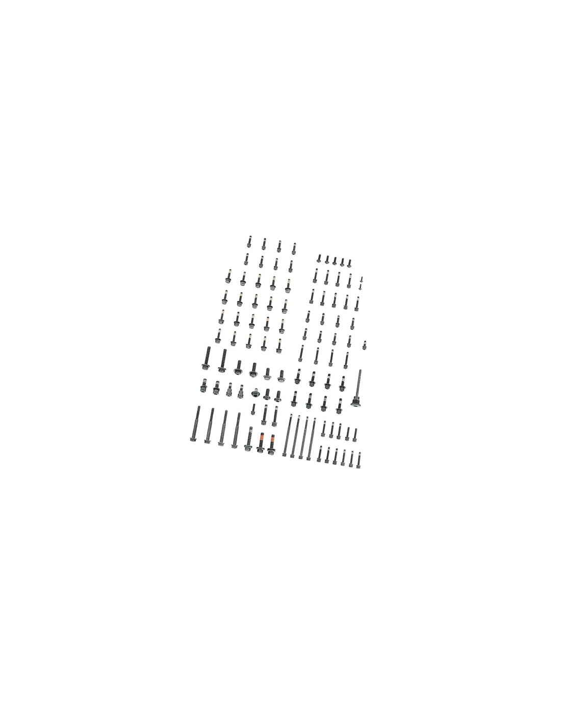 Los kits incluyen la tornillería necesaria para reemplazar todos los elementos de fijación bañados en zinc visibles del motor, transmisión primaria, cajas de balancines, tapa Derby o tapa de levas. Se incluyen parches de bloqueo donde sea necesario. Incluye el tornillería necesario para reemplazar el conjunto de elementos de fijación bañados en zinc visibles de la tapa del primario, tapa derby, lado de la transmisión y tapas superiores, tapas de taqués, tapas de levas y de la caja de balancines.